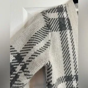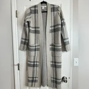 This is a stunning duster in person. It’s warm, soft structured, and can easily fit a size small. It looks expensive and can easily be dressed up or dressed down. This piece is comfortable, flattering and will become your go-to cardigan in your wardrobe. It’s an excellent condition and comes from a clean, smoke-free, pet-free home.