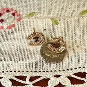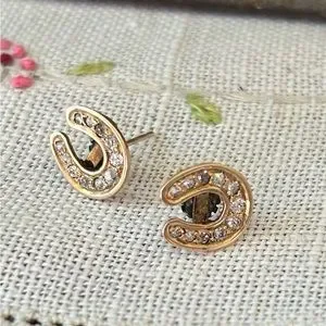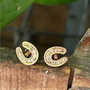 Authentic Antique Victorian 14k yellow gold horseshoe studs with a hint of rose gold. Each little natural diamond is cut by hand with intense craftsmanship, old mine cut denoting the age. Not to be confused with single cut.
