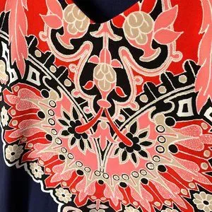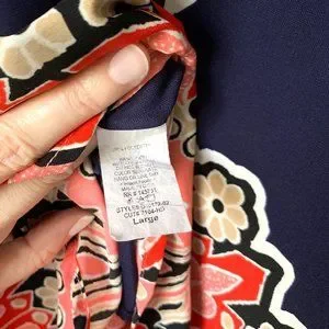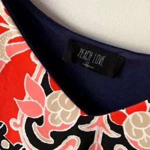 Peach Love California dress in navy with pink, beige and white print. Originally purchased from a boutique, worn twice, can dress up or down depending on the occasion. Wore to a fancy casual beach wedding and received many compliments.