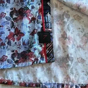 7 DOWNIE ST. LONDON button down floral shirt. Size “4” (M). Blue/red/pink. EUC.