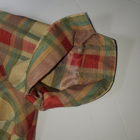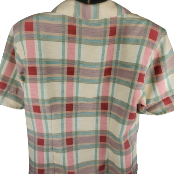 Great Condition Plaid button down top with split sleeves and shoulder pads in size XL pit to pit measures 23"