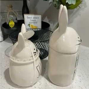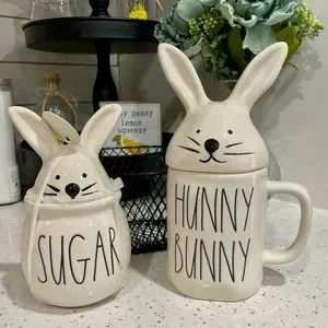 Reduced! NEWπ° Rae Dunn π· Easter bunny rabbit mug & topper+sugar bowl & topper