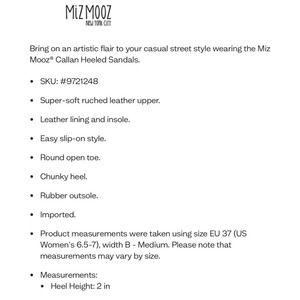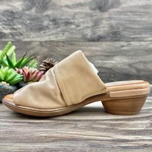 NIB Miz Mooz Callan 40 9-9.5 Ruched Leather Chunky Heeled Slide Sandals Tan