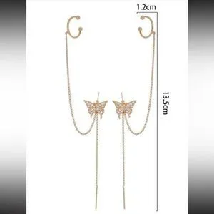2pcs Cubic Zirconia Butterfly Decor Chain Linked Earring Yellow Gold Jewelry