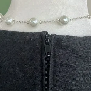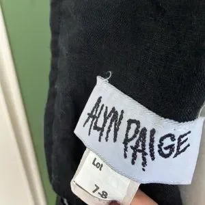Vintage 1980s black and white striped mini dress by Alyn Paige. High scoop neckline and zipper down the back. Fabric does not provide stretch. In excellent condition. Size tag says 7-8. Would best fit an XXS/XS. Measurements taken lying flat.