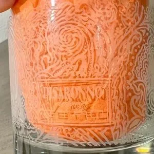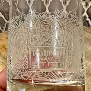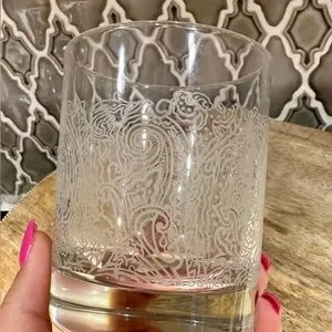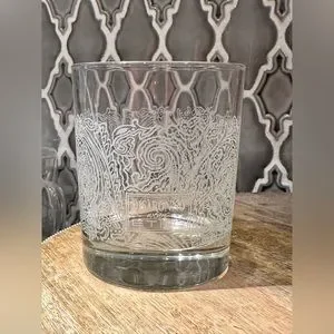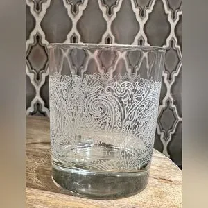 2016 holiday edition. Set of 2 elegantly crafted Disaronno ETRO Etched Double Old Fashion Glasses. Glasses are in their original state with no modifications made. These are clear glass with the intricate ETRO paisley etching.