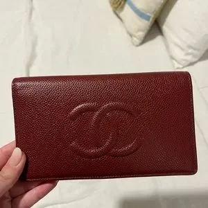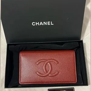 Chanel Burgundy Caviar Leather Timeless CC L Yen Wallet