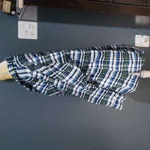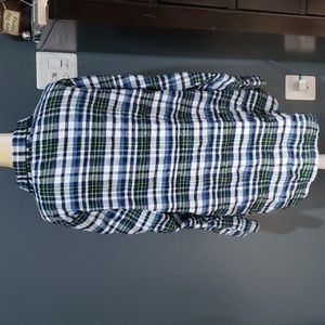 Features: button-front closure, team logo at chest pocket, long sleeves, allover plaid print