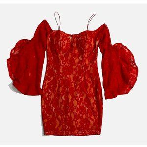 A'GACI Women's Red Lace Off The Shoulder Long Flutter Sleeve Mini Dress Size S