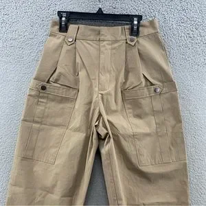 Gentle-Herd Pants NWOT Khaki Beige Pleated Tapered Stretch Cargo Ankle Strap S