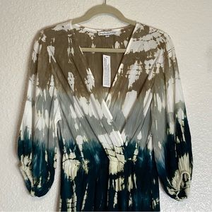 New Young Fabulous & Broke Wrap V Neck Long Sleeves Maxi Dress sz M