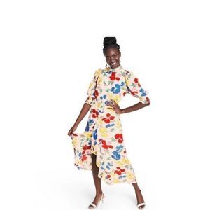 RIXO White Floral Mock Neck Maxi Dress Size 8 Midi length hard to find dress