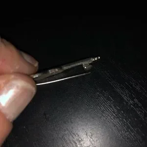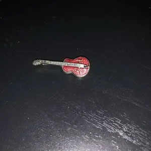 Mom got the 2 accustom guitar brooches as a set and someone made the smallest deeper red guitar pin for her. I think it is silver and enamel.