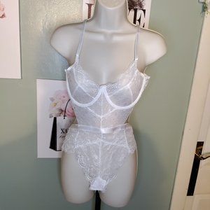 Lace Lingerie Teddy Snap Crotch V Neck Cut Out Underwire One Piece
