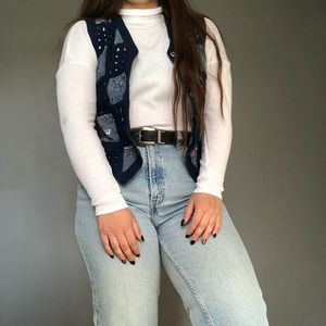 Vintage blue jean vest! Beautiful detailing and well made! Super cute 90s vibe. Made by Koret City Blues, fits just like small! Says petite on tag