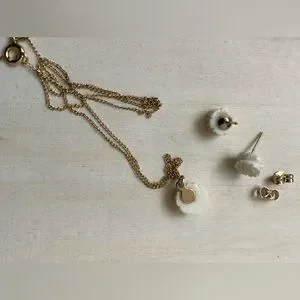 NIB ivory bone rose necklace & earrings NEW Vintage