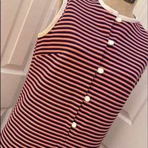 VINTAGE Mr Sweets Pink Blue Striped Sleeveless Above Knee Shift Dress