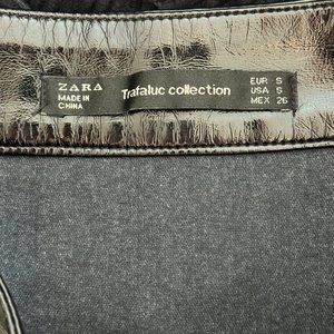 Zara Trafaluc Black Faux Leather Zip Up Mini Skirt