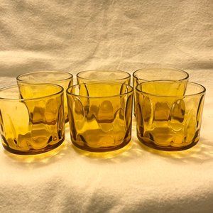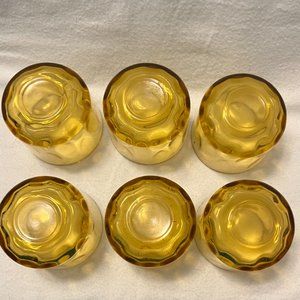 This is a set of six (6) vintage amber juice glasses. They come from an estate. Each glass has a diameter of approximately 2 ¾”. The height of the glass is about 2 ½”.There are no cracks or chips in any of these glasses. They are in very good condition.