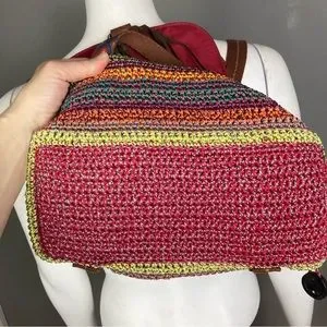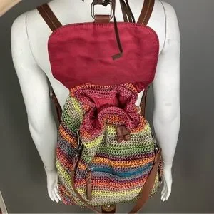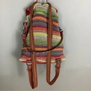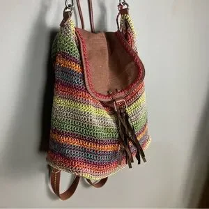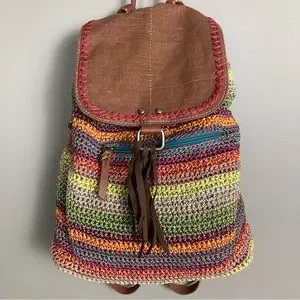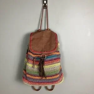 The Sak backpack woven rainbow serape ratan woven multicolor