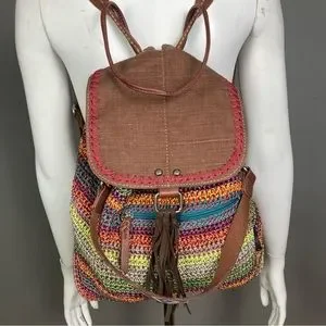 The colors on this are gorgeous! The bag can be carried every way imaginable - wear it as a backpack, shoulder bag, or top handle makes it the perfect summer bag - for the beach, festivals, wearing while doing all of the outdoor activities! Inspired by the Mexican Serape. Versatile and ready as you are for anything.