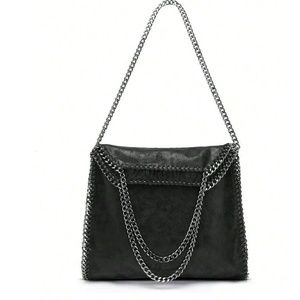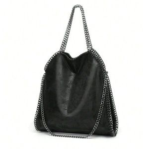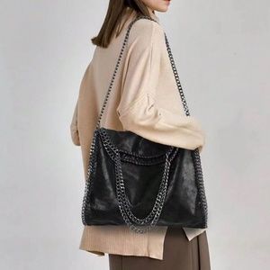 016 Luxe Soft Vegan Leather Chain Shoulder Tote Bag