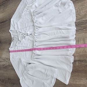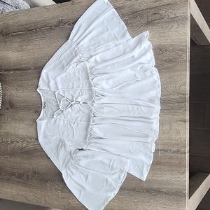 Show Me Your Mumu Poet Tie Top in White Boho Peasant Oversized Lace Up Blouse XS