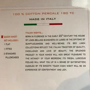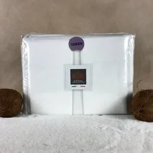 BELLINO ITALY Solid White Bed Sheets Cotton Percale QUEEN SHEET SET
