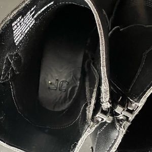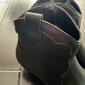 JustFab Kacey Western Ankle Boots. Bootie silhouette in faux leather with stitched details, pointed toes, side zip, side gores and stacked 2” heel. 5.25” shaft height. Worn once and in perfect condition!