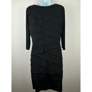 White House Black Market Shapewear Slimming Black Bandage Dress 14 Petite NWT Classic dress has a long back zipper. Built in shapewear is attached along side seams so will not ride up. Dress material is 95% polyester, 5% spandex. Shapewear material is 73% nylon, 27% elastanpo. Brand new condition with tags attached. Measures chest 38 inches length 36.5 inches shoulder to shoulder 15.5" I pack carefully and ship quickly. Have any questions? Please ask. Thank you for looking!