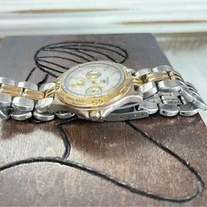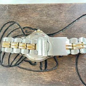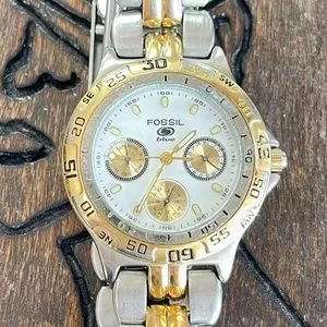 Fossil Preowned two tone men’s watch, no box or extra links included. Good working condition. Look at the pictures to see the normal wear scratches on the watch.