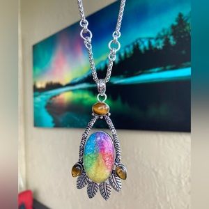 925 sterling silver overlay Rainbow solar quartz tiger eye stone charm necklace