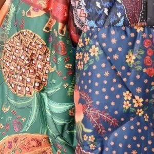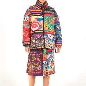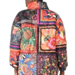 FARM Rio Mixed Scarves Reversible Puffer Jacket Patchwork Dopamine
