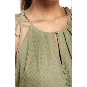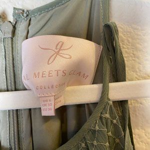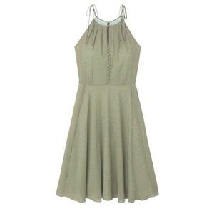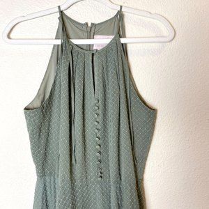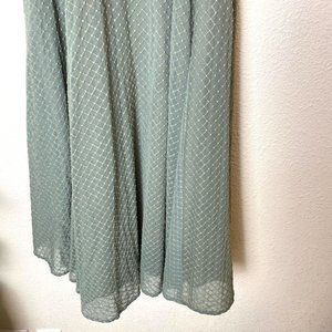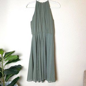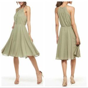 Gal Meets Glam Lenore Shirred Neck A-Line Sleeveless Midi Dress in Dusty Sage Moss Green, Size 6.