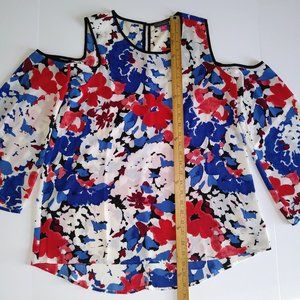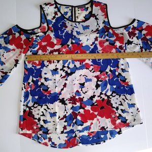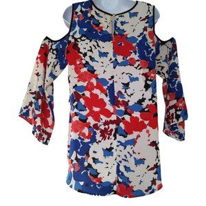 Vince Camuto Multicolor Floral Bell Sleeve Cold Shoulder Blouse Top- Size Small