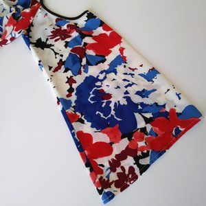 - Bright, Bold Multicolor Floral Abstract Pattern Top in White, Blue, Red and Black