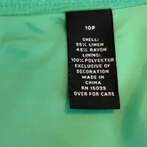 Fabric: 55% linen & 45% rayon (shell) and 100% polyester.