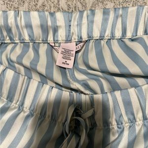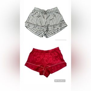 Victoria secret very soft red shorts and blue and white stripes satin shorts bundle. Very soft and silky feeling. These are lightweight and perfect for sleeping in or just relaxing. Wide leg opening. Scrunched waistband for comfort.