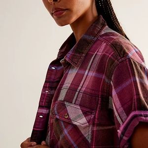 NWT Free People We the Free Vintage Crush Plaid Shirt purple combo.