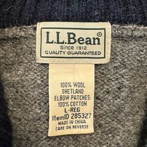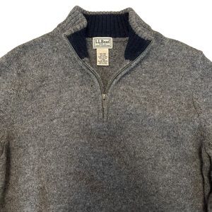L.L. Bean Men’s Gray Shetland Wool Quarter Zip Elbow Patch Sweater in size large.