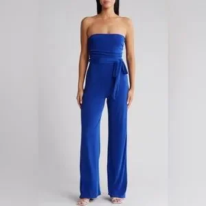 Run the World Royal blue nylon jumpsuit with elastic waist and tie By VICI .purchased at Nordstrom.
