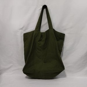 Norma Kamali Large Tote Bag Olive Green Linen Cotton Minimalist Earth Tone Beach