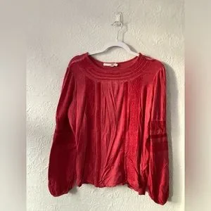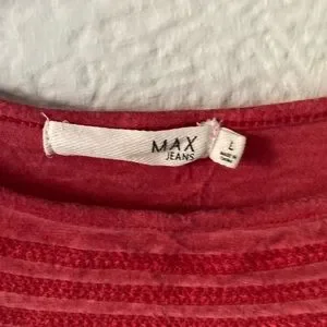 Max Jeans Boho Blouse, Size Large. Soft material, flattering style. Lovely coral/red color. In excellent condition!