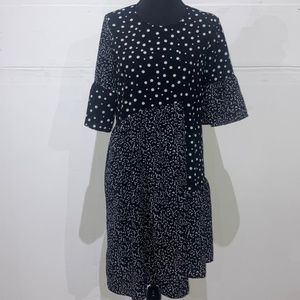 Black and white multi fabric asymmetrical dress