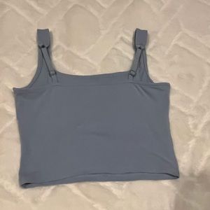 This is between a blue and really light purple but more like a powder blue! Soft cotton material. Perfect layering top for Spring, Summer or vacation.