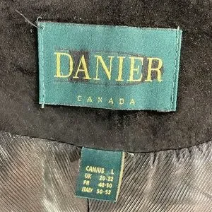 Large Danier suede leather classic black blazer. Quality staple piece. Canadian made. This has either not been worn or rarely. Like new condition.