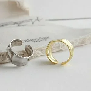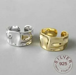 This Edgy and Trendy Open Hammered 925 Sterling Silver Band Looks Great Alone For Boldness or With Other Stacking Rings. It is Handmade Showcasing a Sleek & Smooth Irregular Geometric Shape That Has Been Gold Plated. 💫