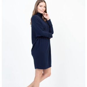 MAJESTIC FILATURES Deluxe Teeshirt French Touch Turtleneck Dress Navy Blue 3T16