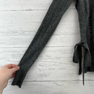 Pam & Gela Gray Destroyed Cashmere Blend Turtleneck Sweater Size S
