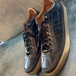 Men’s Jimmy Choo Brown Embossed Leather Croc Sneakers-sz 11